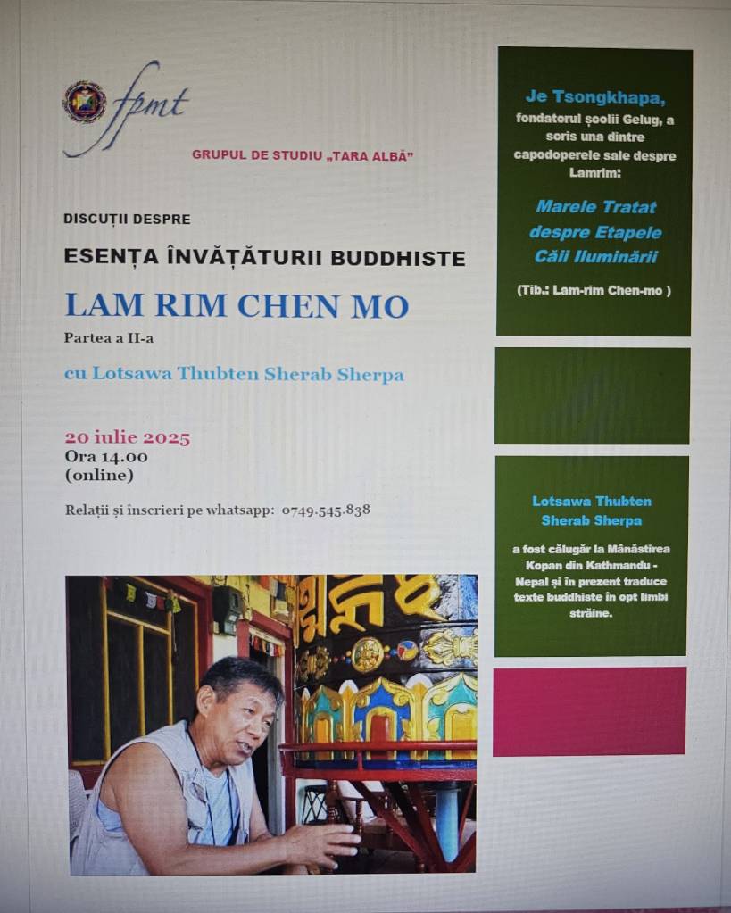În această zi, comunitatea noastră prezintă cu dragoste ofranda traducerii acestui nobil text în limba română: Praise to Dependent Arising de Lama Tsongkhapa. Traducerea a fost efectuată de Veronica Anghelescu Drölma după versiunea în limba engleză elaborată de Geshe Thupten Jinpa, cu consultarea originalului tibetan.