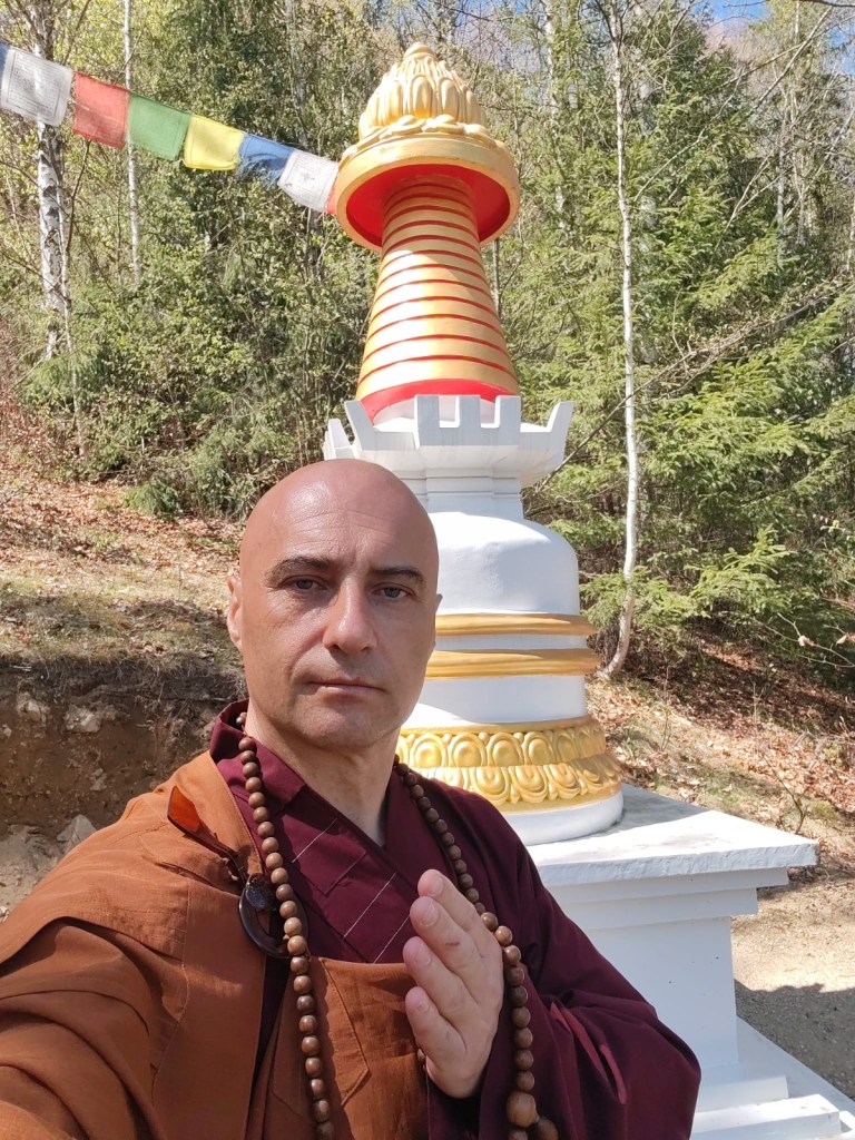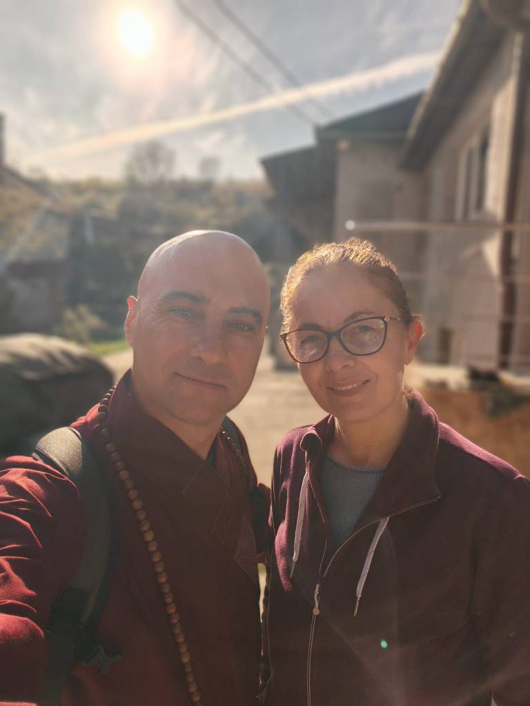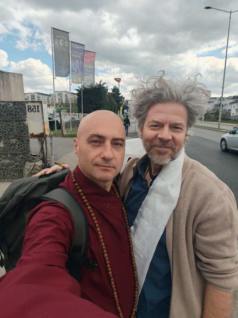 He had set out from Bucharest for Cluj with a statue of Kṣitigarbha in his luggage, wrapped with the kind of care only those who have once carried a Buddha in their hands can understand. The statue was meant to reach Silviu, a dear collaborator an FPMT colleague, an old Companion on the road of Dharma, a practitioner since 1995. The original plan had been for Josho to walk the ten kilometres between Cluj and Florești on foot, in robes, as a silent offering. Silviu, however, equally dedicated to his infant daughter’s schedule, proposed something simpler: a meeting at his workplace, in Cluj.