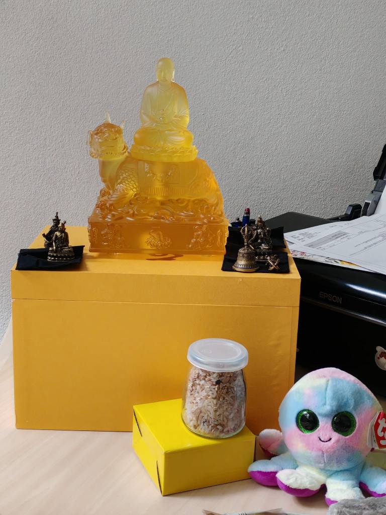 He brought the statue, he brought the offerings from us, his FPMT colleagues (toys, books and some rice and gems from our Mandala); he sat and talked, he performed the service together with him right there, in the office where curious colleagues watched in wonder an Amidaji monk. He gave him advice as a Brother, not as a Saint; he encouraged him to come with the little girl to the stupa at Tranișu, to circumambulate it together. Because Silviu has FAITH, he has devotion to the Buddhas, he has heaps of accumulated merit, I am very sure this friendship will grow and benefit so many other sentient beings!