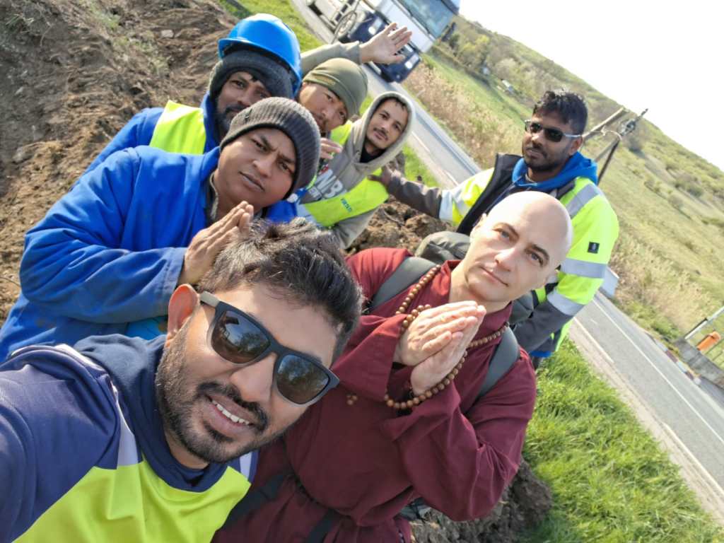 Buddhists, far from home; far from any temple; far from any spiritual comfort in their own language. And Venerable Josho, who at his work receives no salary and who at his temple pays for everything from donations, stopped at the side of the road, recited Refuge prayers with them, gave them the contact details for our community, for Ven. Tenzin Gendun, for Ven. Migmar Dragpo Repa, for the stupa. Because the Buddha-Dharma knows no borders, and because a monk who is truly a monk never walks past a thirsty soul without giving water.